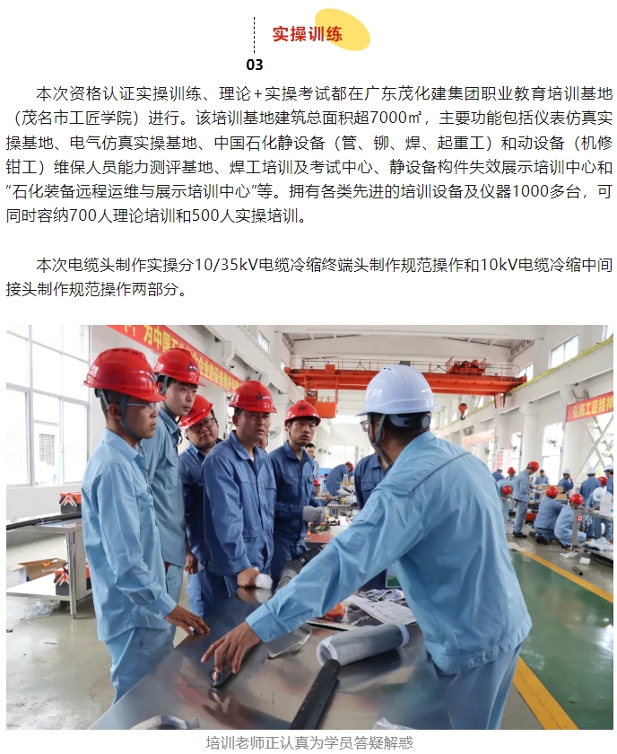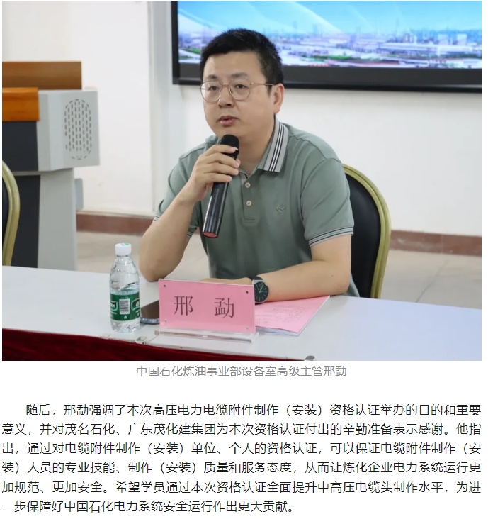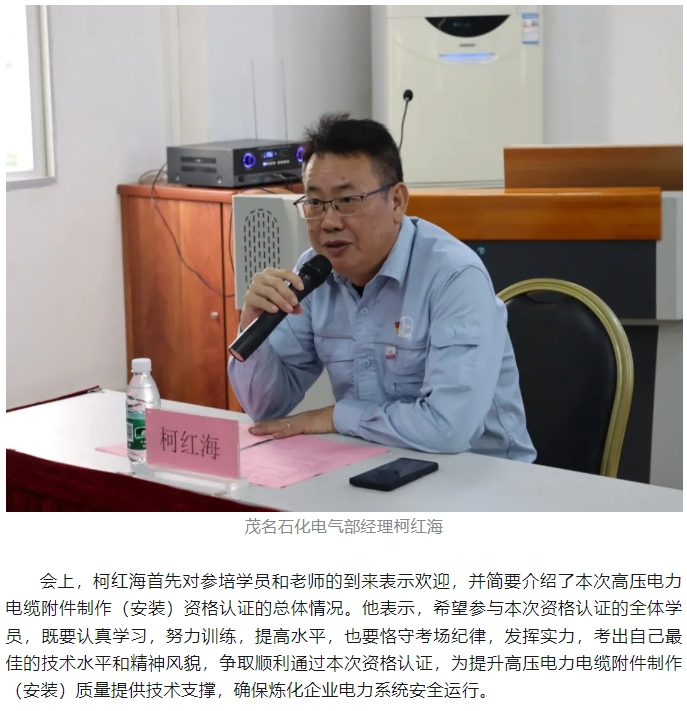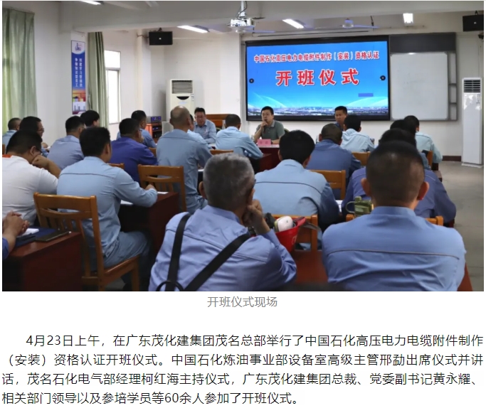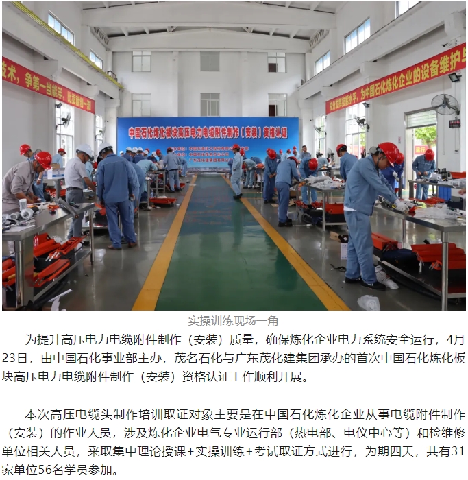 首次中國石(shí)化煉化闆塊(kuai)高壓電力電(diàn)纜附件制作(zuò)(安裝)資格認(ren)證在茂名順(shun)利舉行