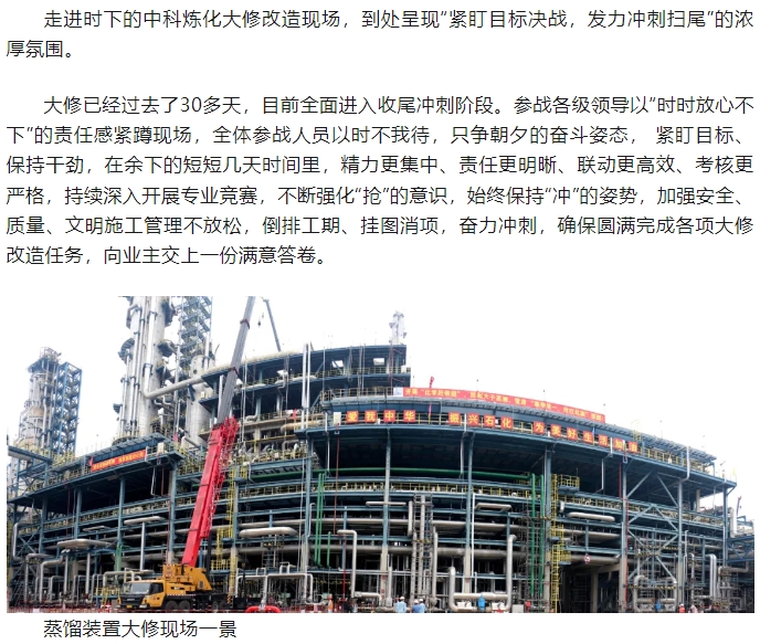 緊盯目标決(jué)戰 奮力沖刺(ci)掃尾——走馬2024年(nián)中科煉化裝(zhuāng)置大🌈修改造(zao)大會戰現場(chang)