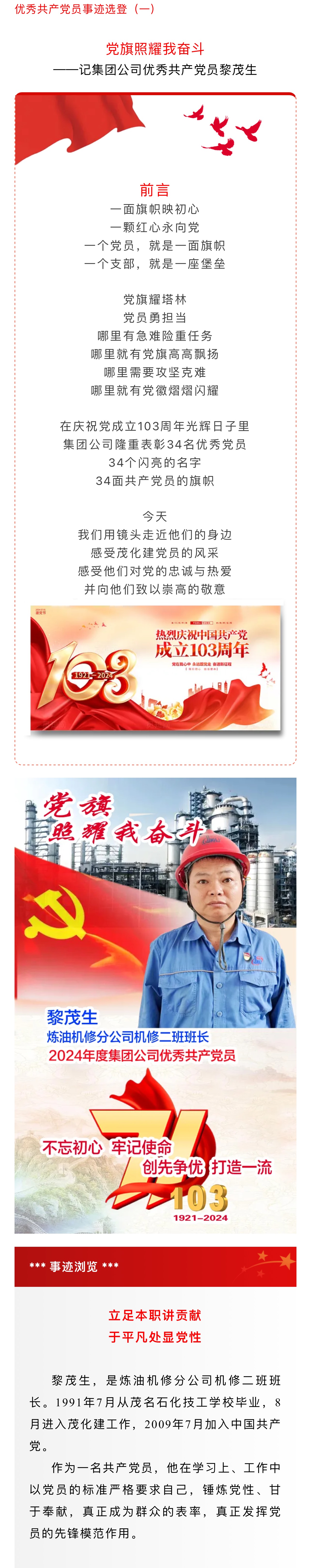 黨旗照耀我(wo)奮鬥——記集團公(gōng)司優秀共産黨(dǎng)員黎茂生📐