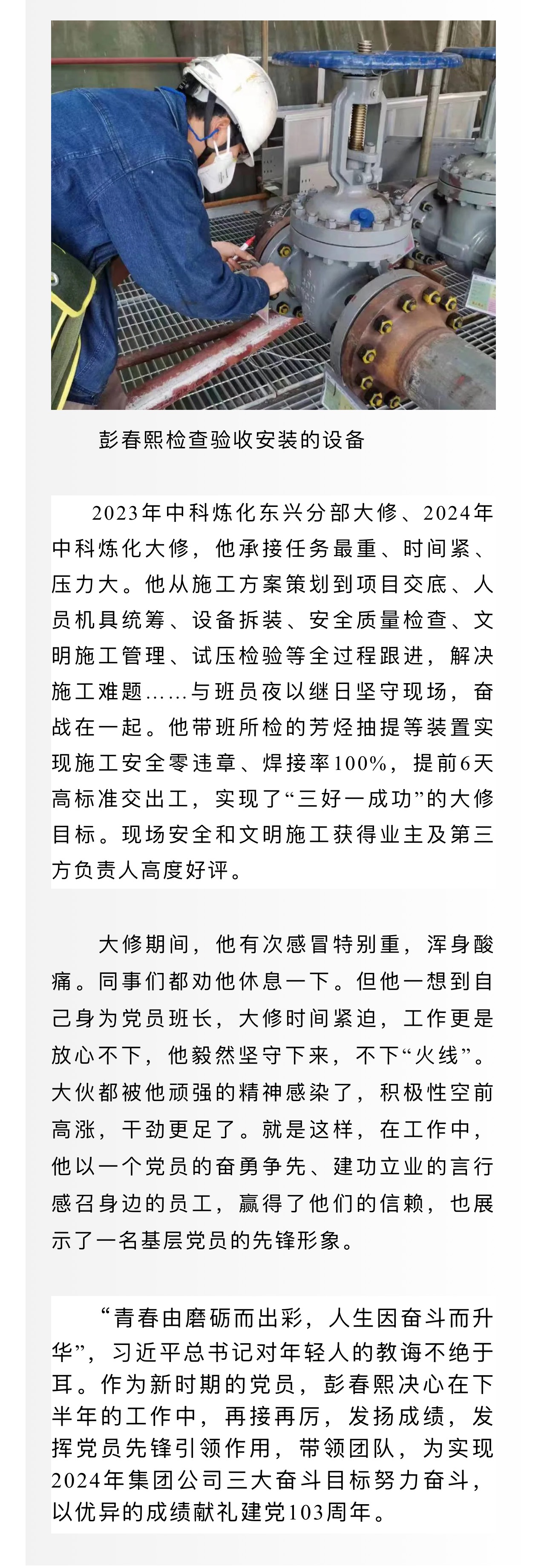 黨旗(qi)照耀我(wo)奮鬥——記(ji)集團公(gong)司優秀(xiù)共産黨(dang)員彭春(chūn)熙