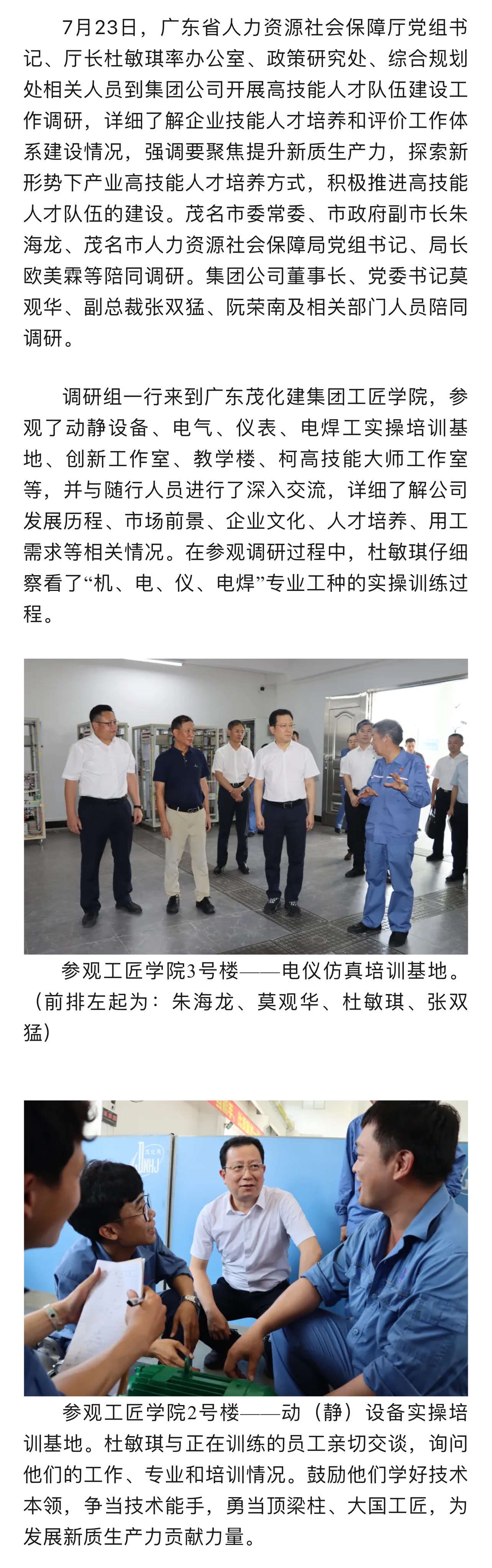廣東省人社(she)廳到集團公司(sī)調研高技能人(rén)才隊伍建設工(gong)作☎️